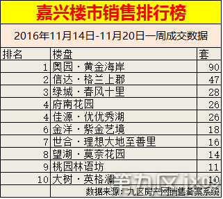 一周成交▏2016年11月14日-11月20日嘉興樓市共成交721套