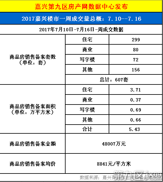 一周成交▏2017年7月10日-7月16日嘉興樓市共成交607套